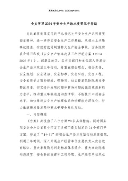 / 【七哥公文】2024年:全文学习2024年安全生产治本攻坚三年行动+更多免费公文+VX:QiGeGongWen2024
