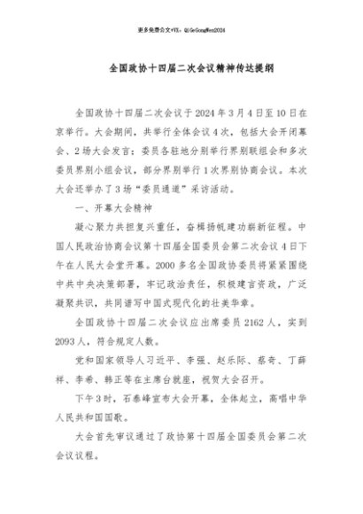 / 【七哥公文】2024年:全国政协十四届二次会议精神传达提纲+更多免费公文+VX:QiGeGongWen2024