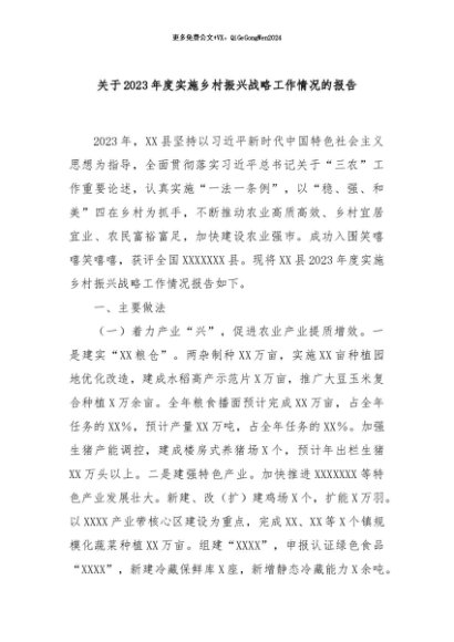 / 【七哥公文】2024年:关于2023年度实施乡村振兴战略工作情况的报告+更多免费公文+VX:QiGeGongWen2024