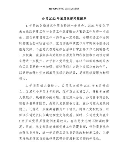 / 【七哥公文】2024年:公司基层党建问题清单+更多免费公文+VX:QiGeGongWen2024