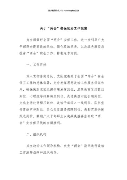 / 【七哥公文】2024年:关于“两会”安保政治工作预案+更多免费公文+VX:QiGeGongWen2024