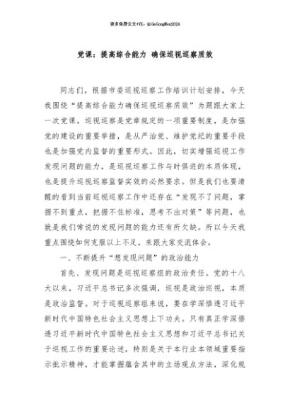 / 【七哥公文】2024年:党课:提高综合能力 确保巡视巡察质效+更多免费公文+VX:QiGeGongWen2024