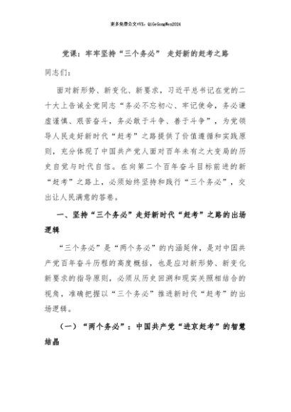 / 【七哥公文】2024年:党课:牢牢坚持“三个务必” 走好新的赶考之路+更多免费公文+VX:QiGeGongWen2024