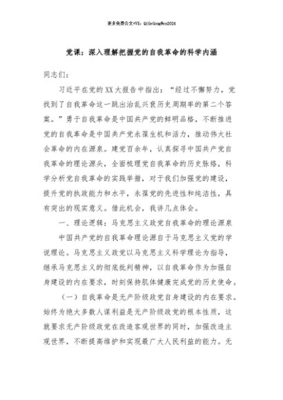 / 【七哥公文】2024年:党课:深入理解把握党的自我革命的科学内涵+更多免费公文+VX:QiGeGongWen2024