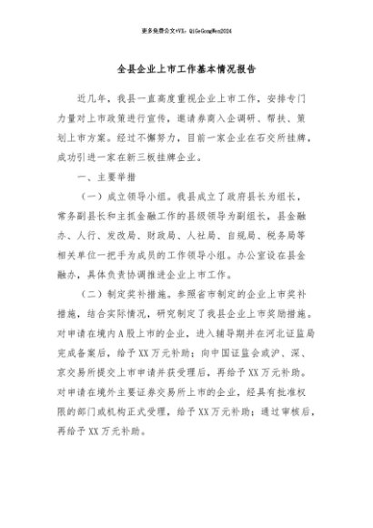 / 【七哥公文】2024年:全县企业上市工作基本情况报告+更多免费公文+VX:QiGeGongWen2024
