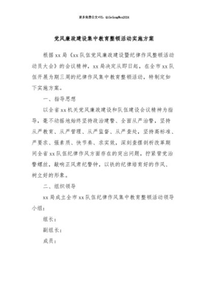/ 【七哥公文】2024年:党风廉政建设集中教育整顿活动实施方案+更多免费公文+VX:QiGeGongWen2024