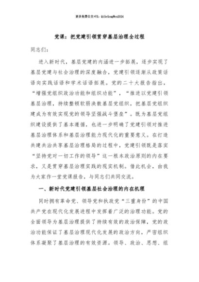 / 【七哥公文】2024年:党课:把党建引领贯穿基层治理全过程+更多免费公文+VX:QiGeGongWen2024