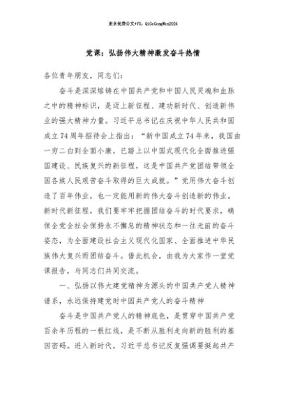 / 【七哥公文】2024年:党课:弘扬伟大精神激发奋斗热情+更多免费公文+VX:QiGeGongWen2024