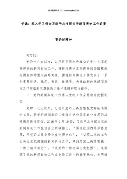 【七哥公文】2024年:党课:深入学习领会习近平总书记关于新闻舆论工作的重要论述精神+更多免费公文+VX:QiGeGongWen2024