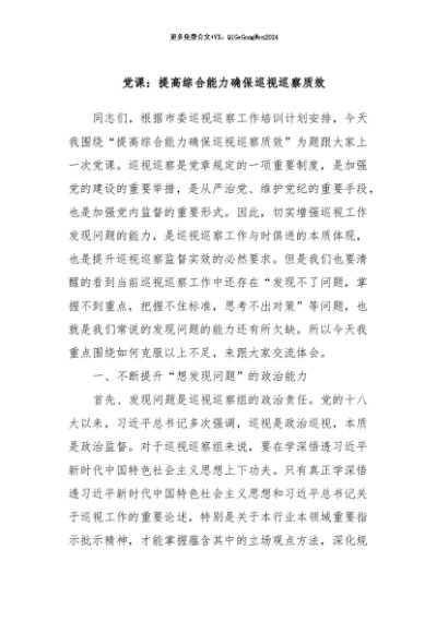 / 【七哥公文】2024年:党课:提高综合能力确保巡视巡察质效+更多免费公文+VX:QiGeGongWen2024