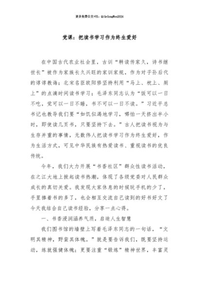 / 【七哥公文】2024年:党课:把读书学习作为终生爱好+更多免费公文+VX:QiGeGongWen2024