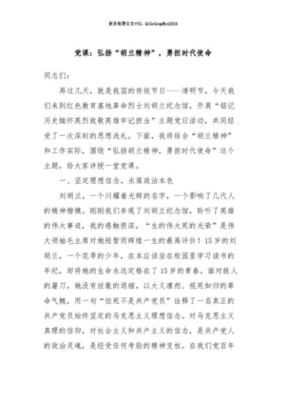 / 【七哥公文】2024年:党课:弘扬“胡兰精神”,勇担时代使命+更多免费公文+VX:QiGeGongWen2024
