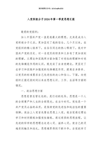/ 【七哥公文】2024年:入党积极分子2024年第一季度思想汇报+更多免费公文+VX:QiGeGongWen2024