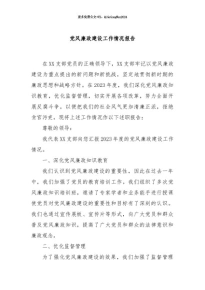 / 【七哥公文】2024年:党风廉政建设工作情况报告+更多免费公文+VX:QiGeGongWen2024