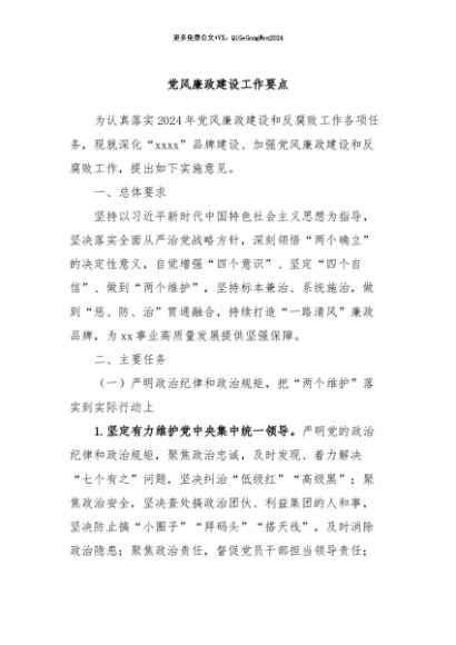 / 【七哥公文】2024年:党风廉政建设工作要点+更多免费公文+VX:QiGeGongWen2024