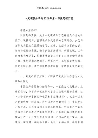 / 【七哥公文】2024年:入党积极分子的2024年第一季度思想汇报+更多免费公文+VX:QiGeGongWen2024