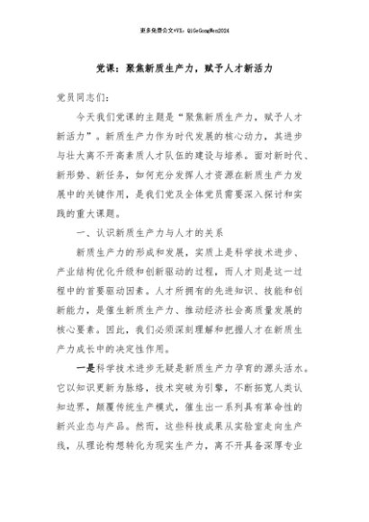 / 【七哥公文】2024年:党课:聚焦新质生产力,赋予人才新活力+更多免费公文+VX:QiGeGongWen2024