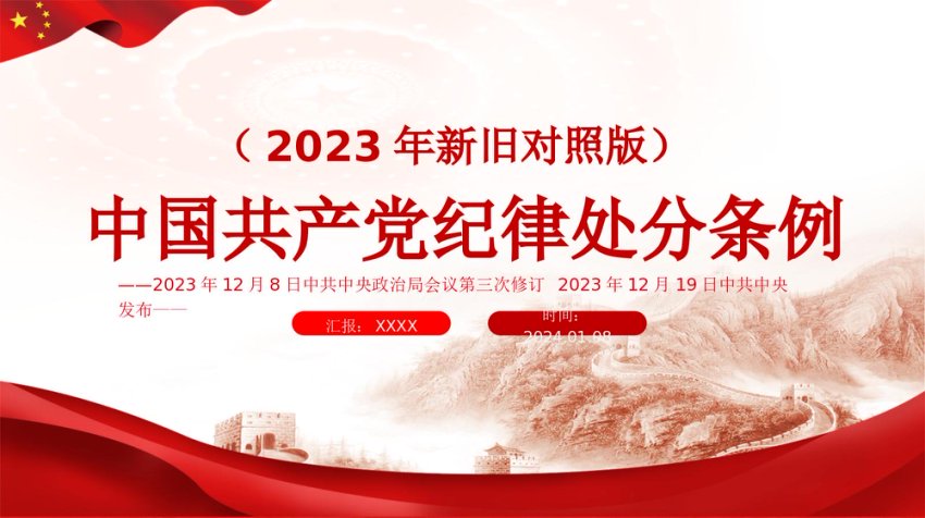 【七哥公文】2024年:党课:《中国共产党纪律处分条例》2023年新旧对照版PPT+更多免费公文+VX:QiGeGongWen2024