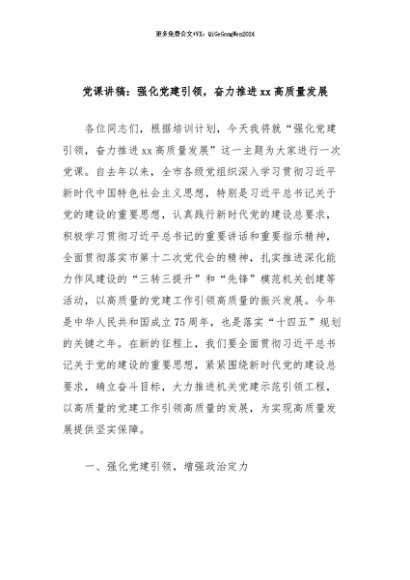 / 【七哥公文】2024年:党课讲稿:强化党建引领,奋力推进xx高质量发展+更多免费公文+VX:QiGeGongWen2024