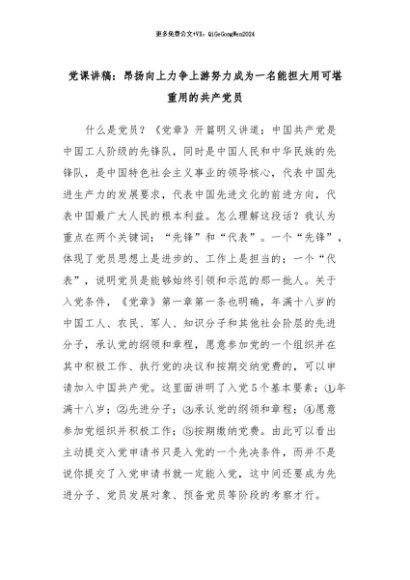 【七哥公文】2024年:党课讲稿:昂扬向上力争上游努力成为一名能担大用可堪重用的共产党员+更多免费公文+VX:QiGeGongWen2024