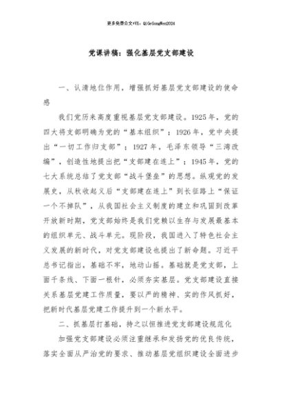 / 【七哥公文】2024年:党课讲稿:强化基层党支部建设+更多免费公文+VX:QiGeGongWen2024