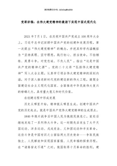 / 【七哥公文】2024年:党课讲稿:在伟大建党精神的激励下实现中国式现代化+更多免费公文+VX:QiGeGongWen2024