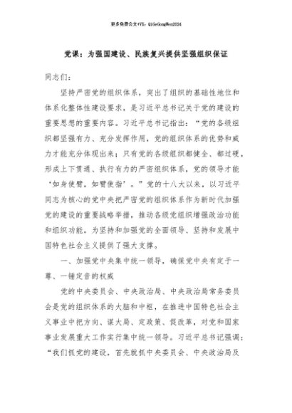 / 【七哥公文】2024年:党课:为强国建设、民族复兴提供坚强组织保证+更多免费公文+VX:QiGeGongWen2024