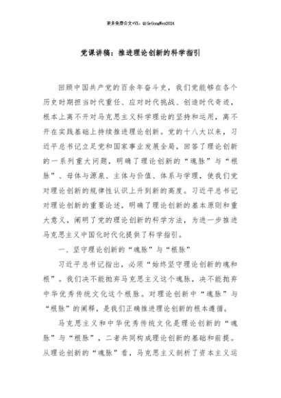 / 【七哥公文】2024年:党课讲稿:推进理论创新的科学指引+更多免费公文+VX:QiGeGongWen2024
