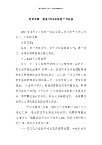 / 【七哥公文】2024年:党课讲稿:聚焦2024年政府工作报告+更多免费公文+VX:QiGeGongWen2024