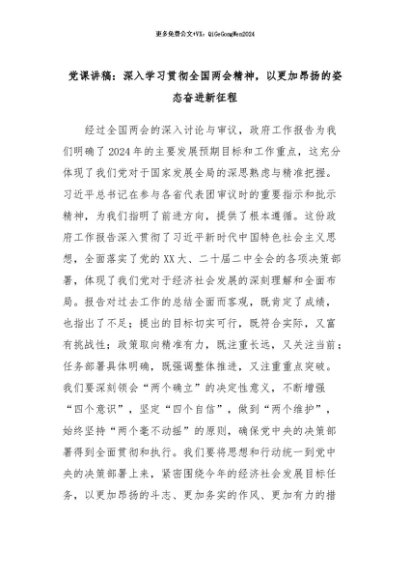 【七哥公文】2024年:党课讲稿:深入学习贯彻全国两会精神,以更加昂扬的姿态奋进新征程+更多免费公文+VX:QiGeGongWen2024