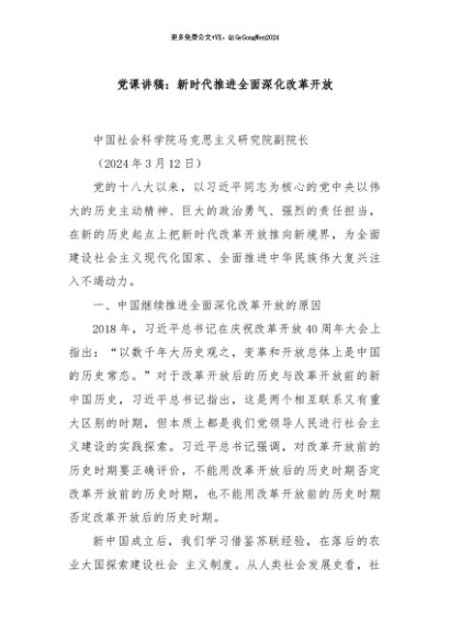/ 【七哥公文】2024年:党课讲稿:新时代推进全面深化改革开放+更多免费公文+VX:QiGeGongWen2024