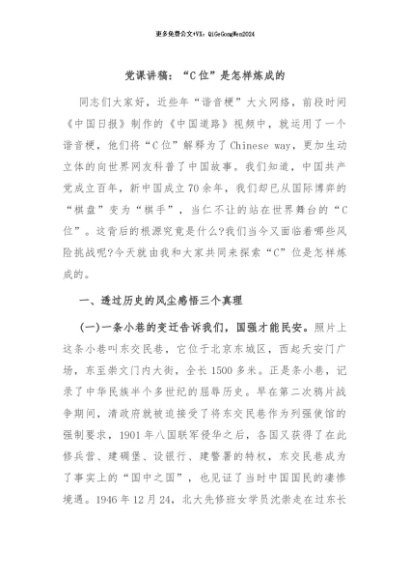 / 【七哥公文】2024年:党课讲稿:“C位”是怎样炼成的+更多免费公文+VX:QiGeGongWen2024