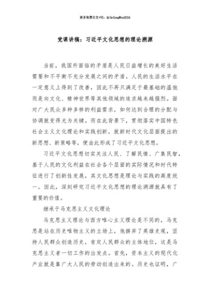 / 【七哥公文】2024年:党课讲稿:习近平文化思想的理论溯源+更多免费公文+VX:QiGeGongWen2024
