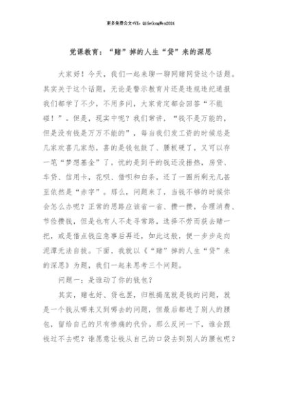 / 【七哥公文】2024年:党课教育:“赌”掉的人生“贷”来的深思+更多免费公文+VX:QiGeGongWen2024