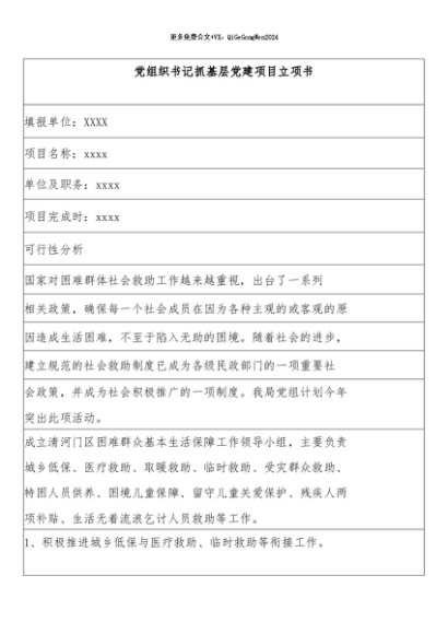 / 【七哥公文】2024年:党组织书记抓基层党建项目立项书+更多免费公文+VX:QiGeGongWen2024
