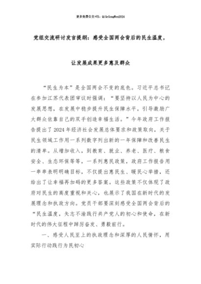 【七哥公文】2024年:党组交流研讨发言提纲:感受全国两会背后的民生温度,让发展成果更多惠及群众+更多免费公文+VX:QiGeGongWen2024