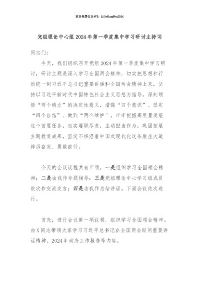 【七哥公文】2024年:党组理论中心组2024年第一季度集中学习研讨主持词+更多免费公文+VX:QiGeGongWen2024