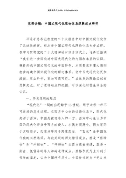 / 【七哥公文】2024年:党课讲稿:中国式现代化理论体系逻辑起点研究+更多免费公文+VX:QiGeGongWen2024
