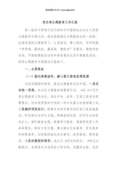 / 【七哥公文】2024年:党支部主题教育工作汇报+更多免费公文+VX:QiGeGongWen2024