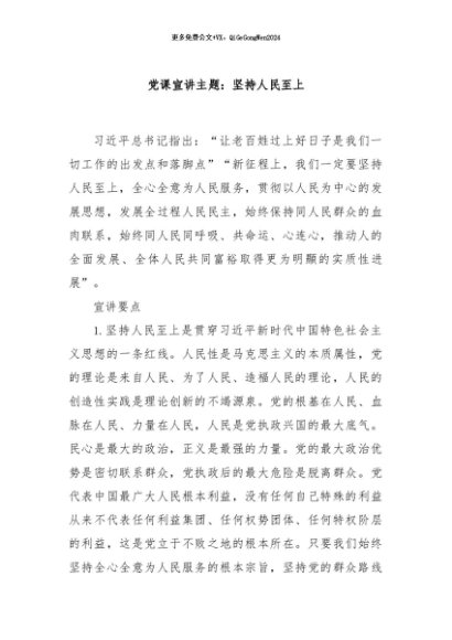 / 【七哥公文】2024年:党课宣讲主题:坚持人民至上+更多免费公文+VX:QiGeGongWen2024