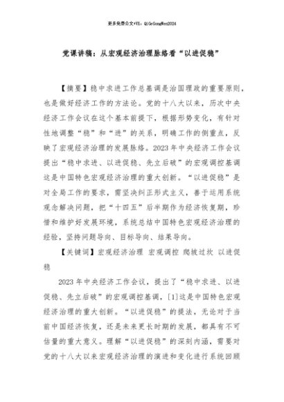 / 【七哥公文】2024年:党课讲稿:从宏观经济治理脉络看“以进促稳”+更多免费公文+VX:QiGeGongWen2024