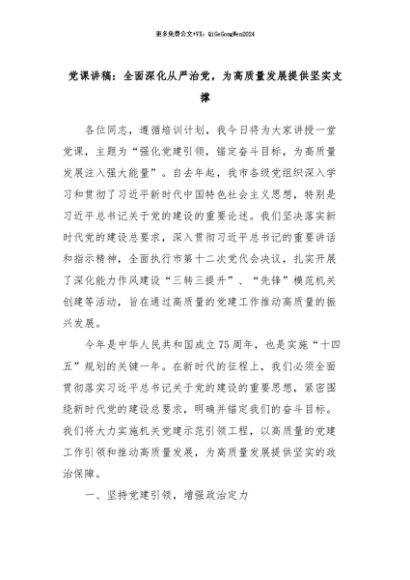 【七哥公文】2024年:党课讲稿:全面深化从严治党,为高质量发展提供坚实支撑+更多免费公文+VX:QiGeGongWen2024