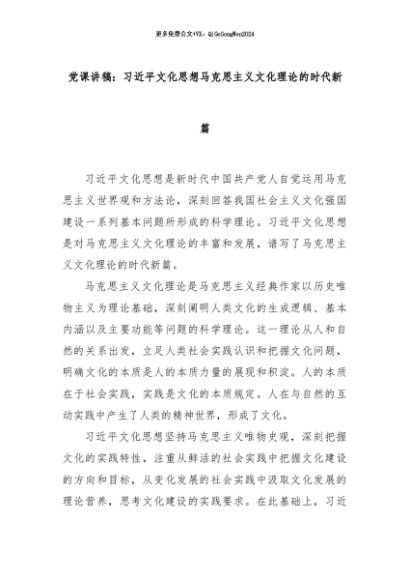 【七哥公文】2024年:党课讲稿:习近平文化思想马克思主义文化理论的时代新篇+更多免费公文+VX:QiGeGongWen2024