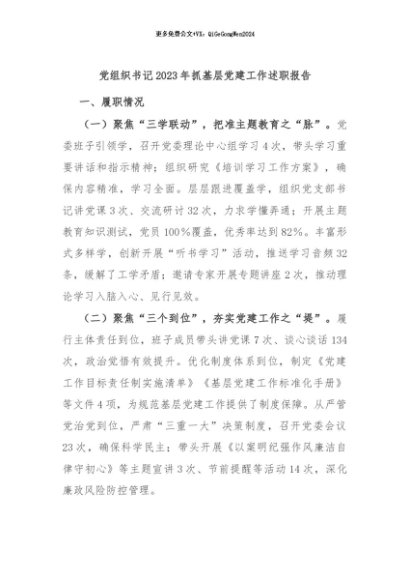 / 【七哥公文】2024年:党组织书记2023年抓基层党建工作述职报告+更多免费公文+VX:QiGeGongWen2024