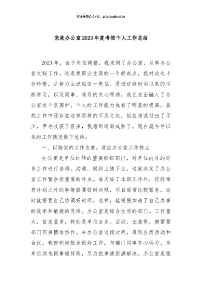 / 【七哥公文】2024年:党政办公室2023年度考核个人工作总结+更多免费公文+VX:QiGeGongWen2024