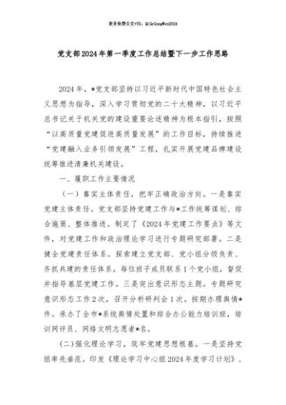 / 【七哥公文】2024年:党支部2024年第一季度工作总结暨下一步工作思路+更多免费公文+VX:QiGeGongWen2024