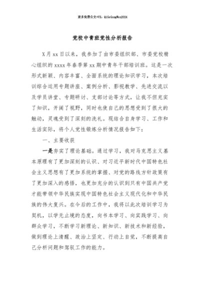 / 【七哥公文】2024年:党校中青班党性分析报告+更多免费公文+VX:QiGeGongWen2024