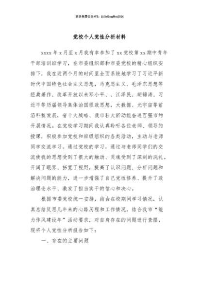 / 【七哥公文】2024年:党校个人党性分析材料+更多免费公文+VX:QiGeGongWen2024