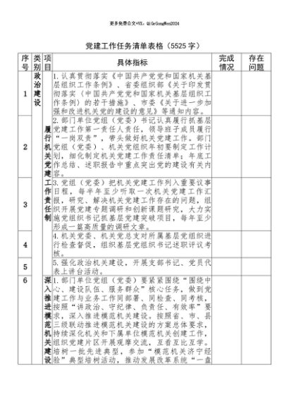 / 【七哥公文】2024年:党建工作任务清单表格+更多免费公文+VX:QiGeGongWen2024