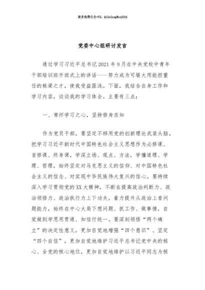 / 【七哥公文】2024年:党委中心组研讨发言+更多免费公文+VX:QiGeGongWen2024